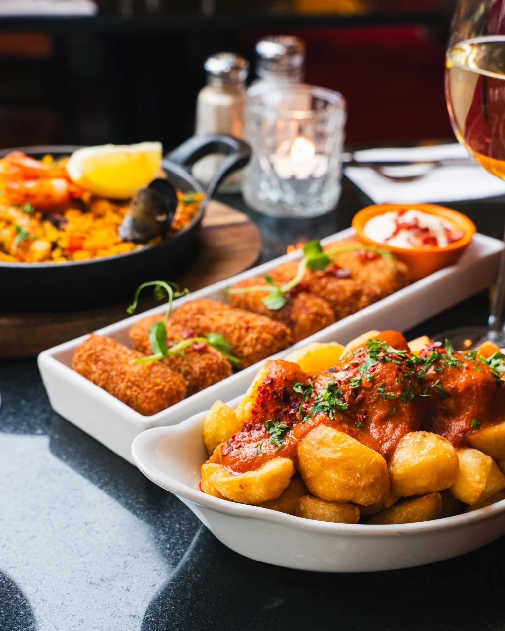 - Fried chunky potatoes with a spicy tomato sauce or Aioli (G2) (MS) (SD)